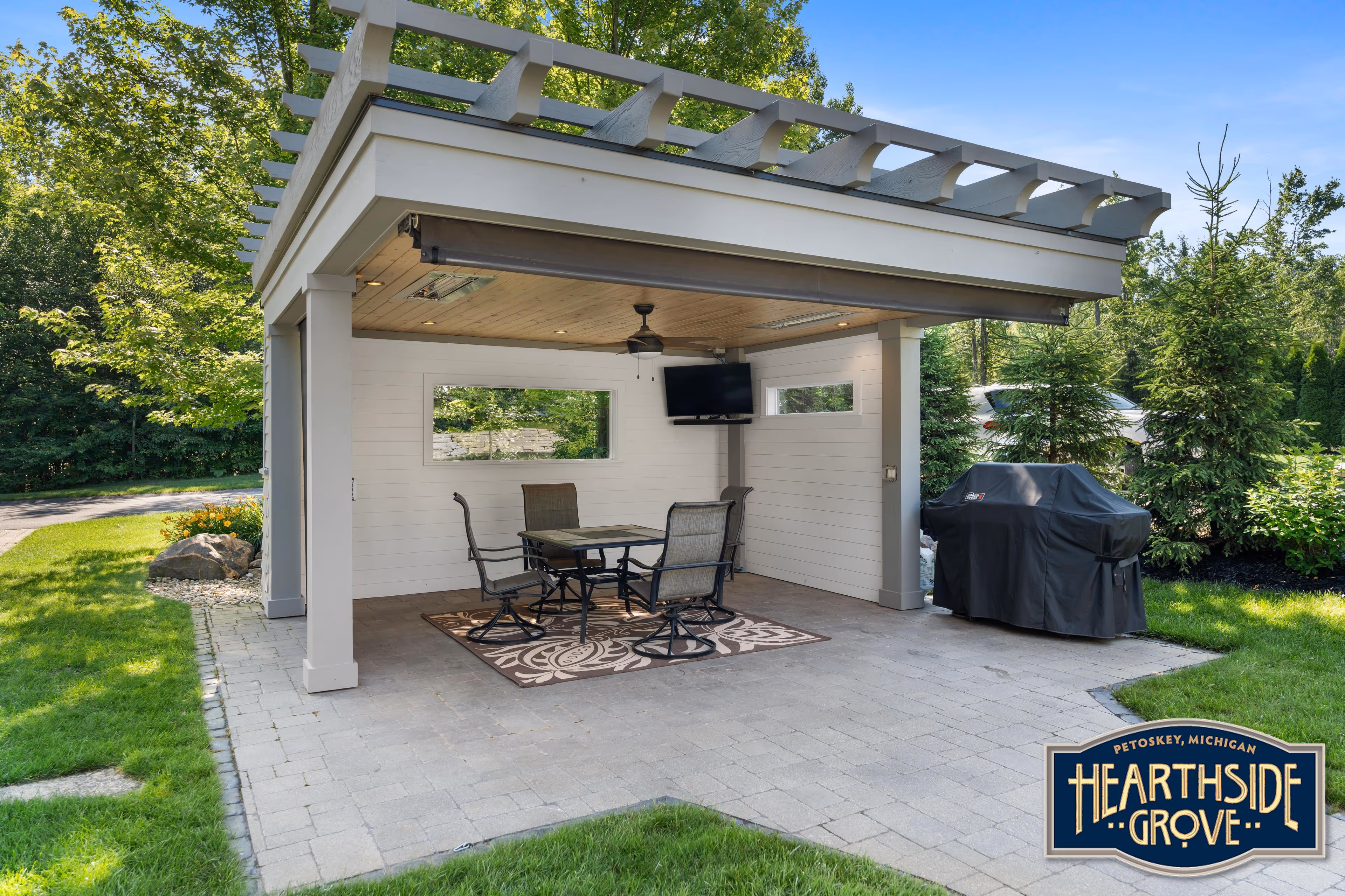 - Custom pergola provides shade and comfort, perfect for dining, entertaining, or relaxing year-round.