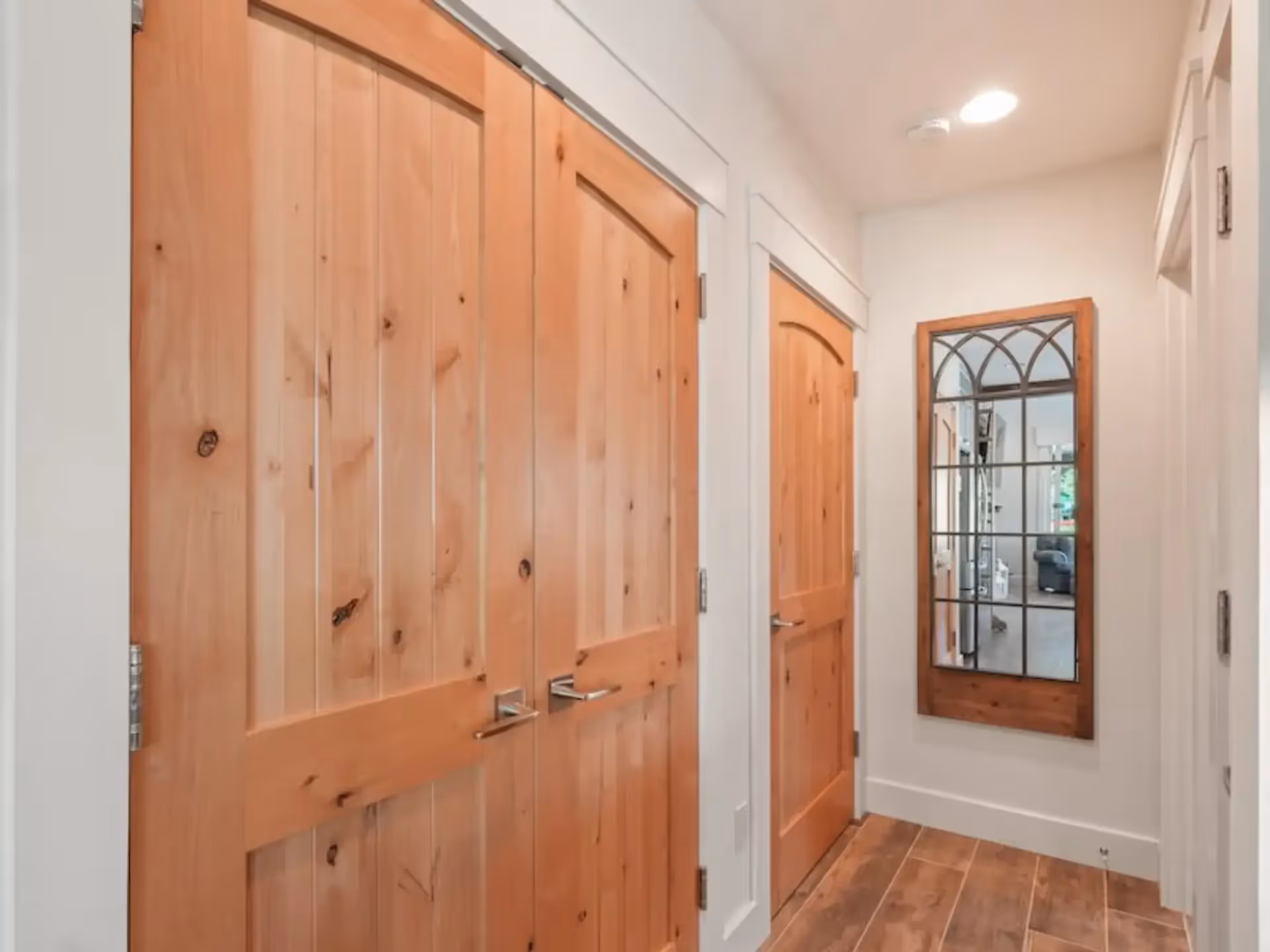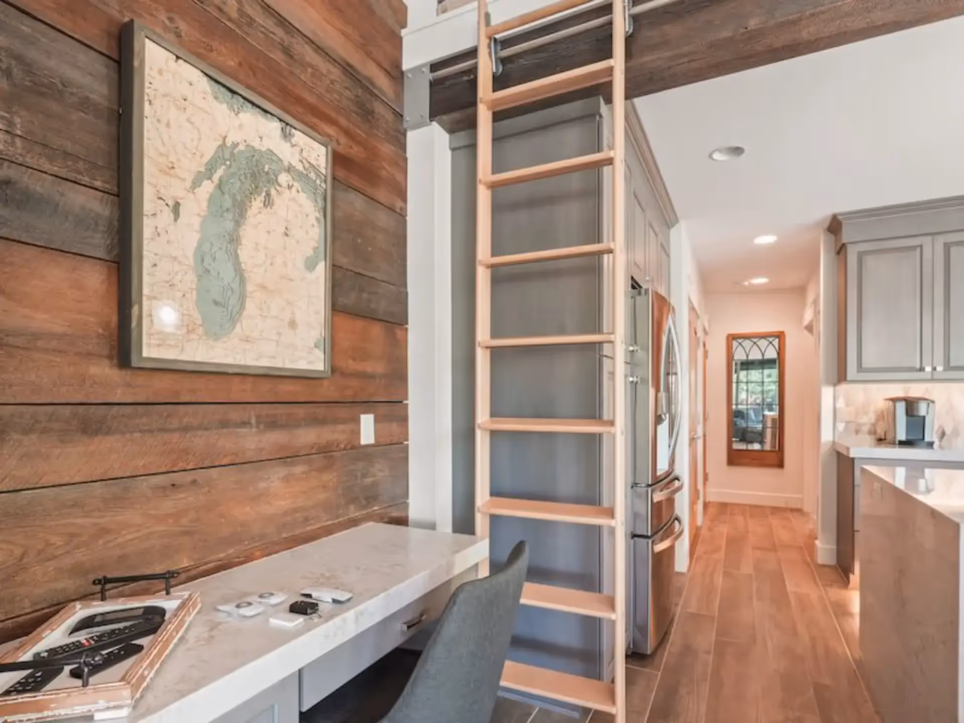 • Exposed wood beams and warm finishes create a sophisticated yet welcoming atmosphere.