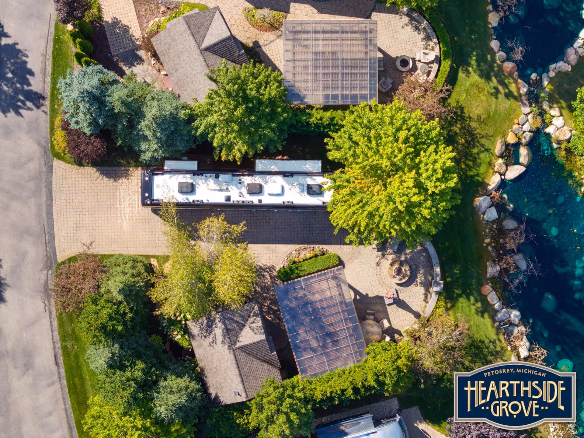Lot 17 is a stunning pull-in property offering a rare combination of streamside views, elegant outdoor living, and a charming custom bungalow. With serene fountains just beyond the lot, lush landscaping for privacy, and thoughtfully designed features, this retreat is perfectly suited for both peaceful escapes and lively entertaining. From the pergola-covered patio to the cozy fire pit and stylish interior finishes, every detail of Lot 17 creates an inviting northern Michigan lifestyle.
