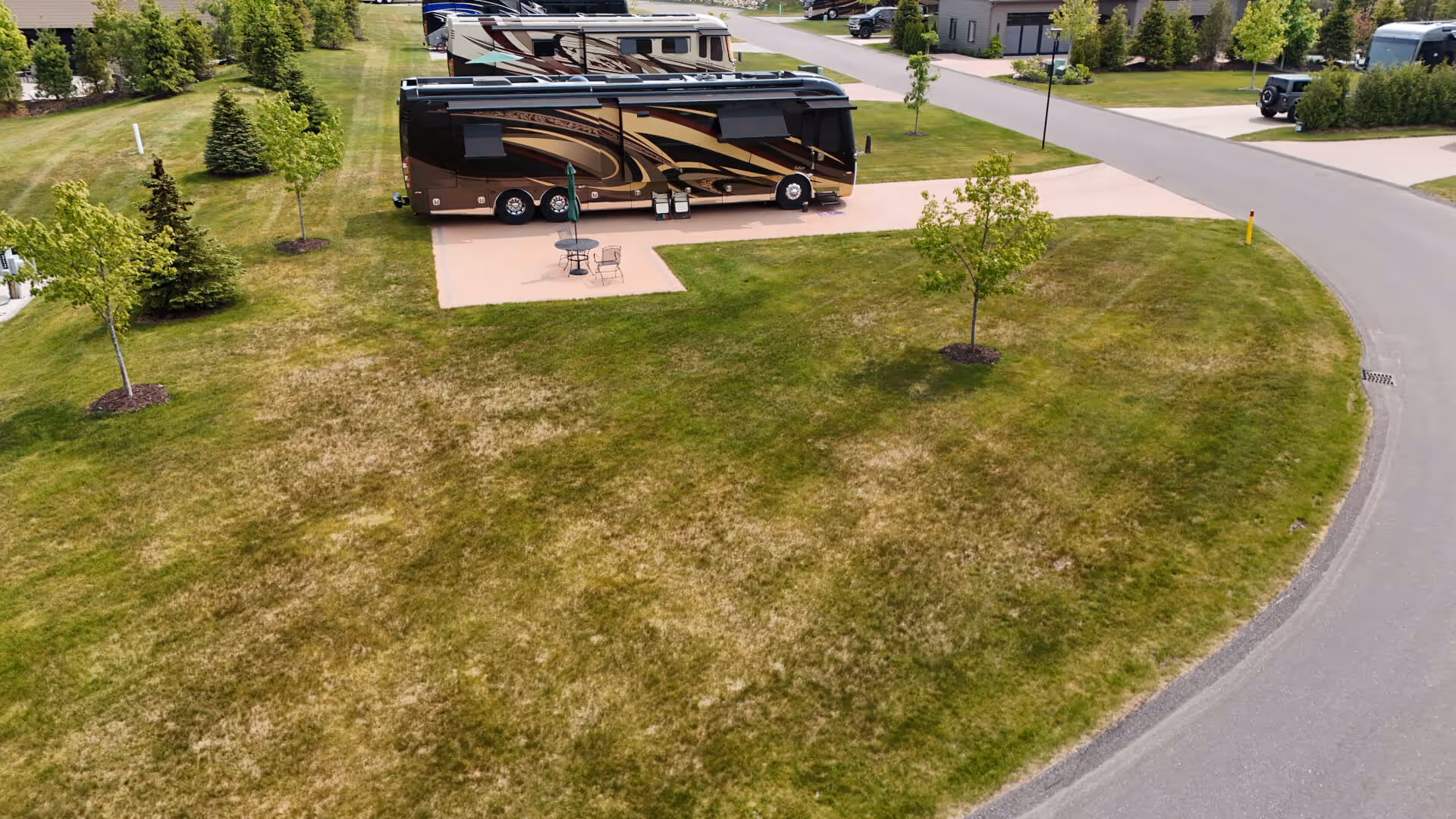 Lot 302 is a thoughtfully designed back-in property that combines modern amenities with the natural beauty of Hearthside Grove. With a generous motorcoach pad, stylish outdoor living area, and reliable Wi-Fi, this lot is ideal for those who want both comfort and functionality. Its east-facing orientation ensures stunning northern Michigan sunrises to begin your day and welcome shade in the afternoons for relaxation and entertaining.