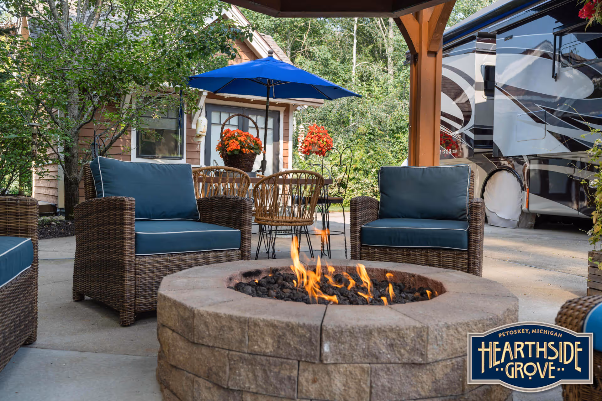 Lot 339 is an exceptional east-facing, back-in property designed for comfort and livability in every season. With a four-season canvas-wrapped pergola, lush landscaping, and a beautifully finished bungalow, this property offers both elegance and functionality in one of northern Michigan’s most desirable motor coach resorts.